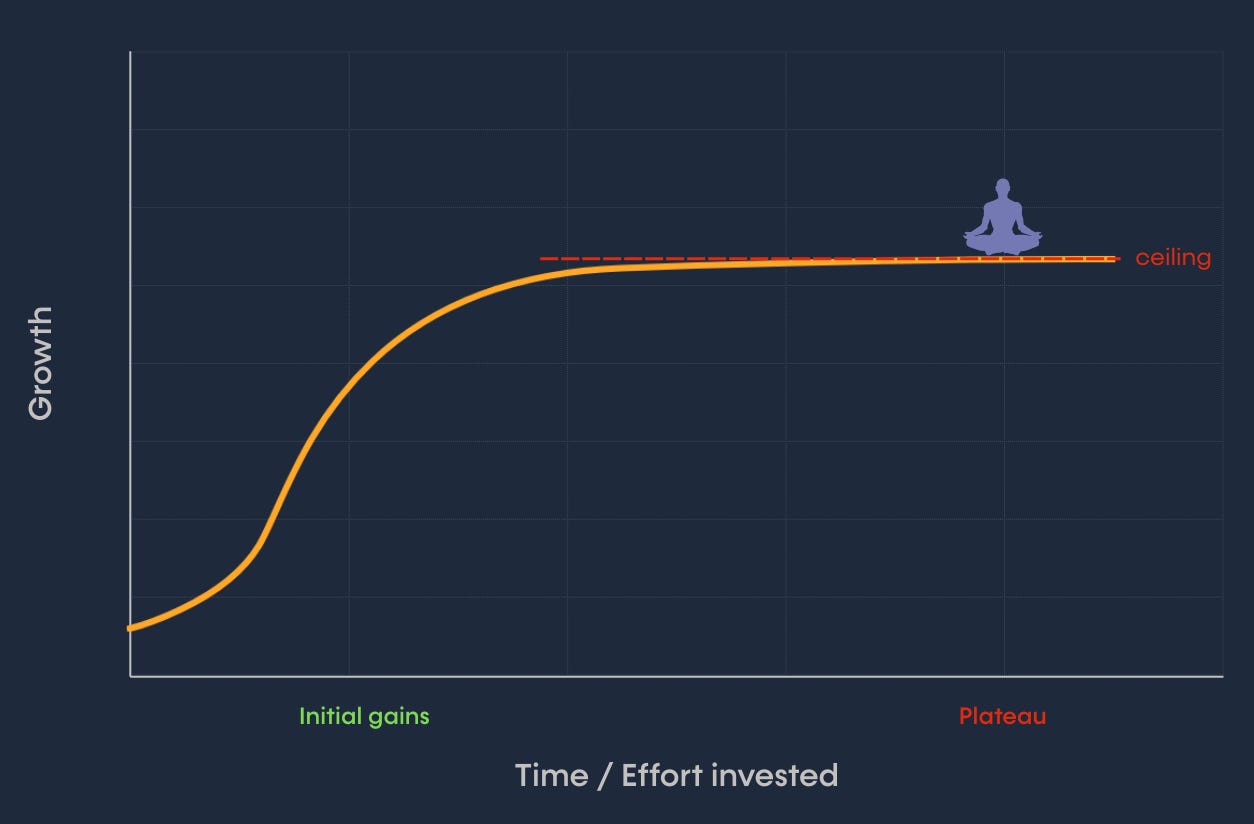 Discipline and habit optimization. Real gains in efficiency and consistency. But optimizing within your current possibility space doesn’t expand the space. You get better at running on the same track, not at reaching new tracks.