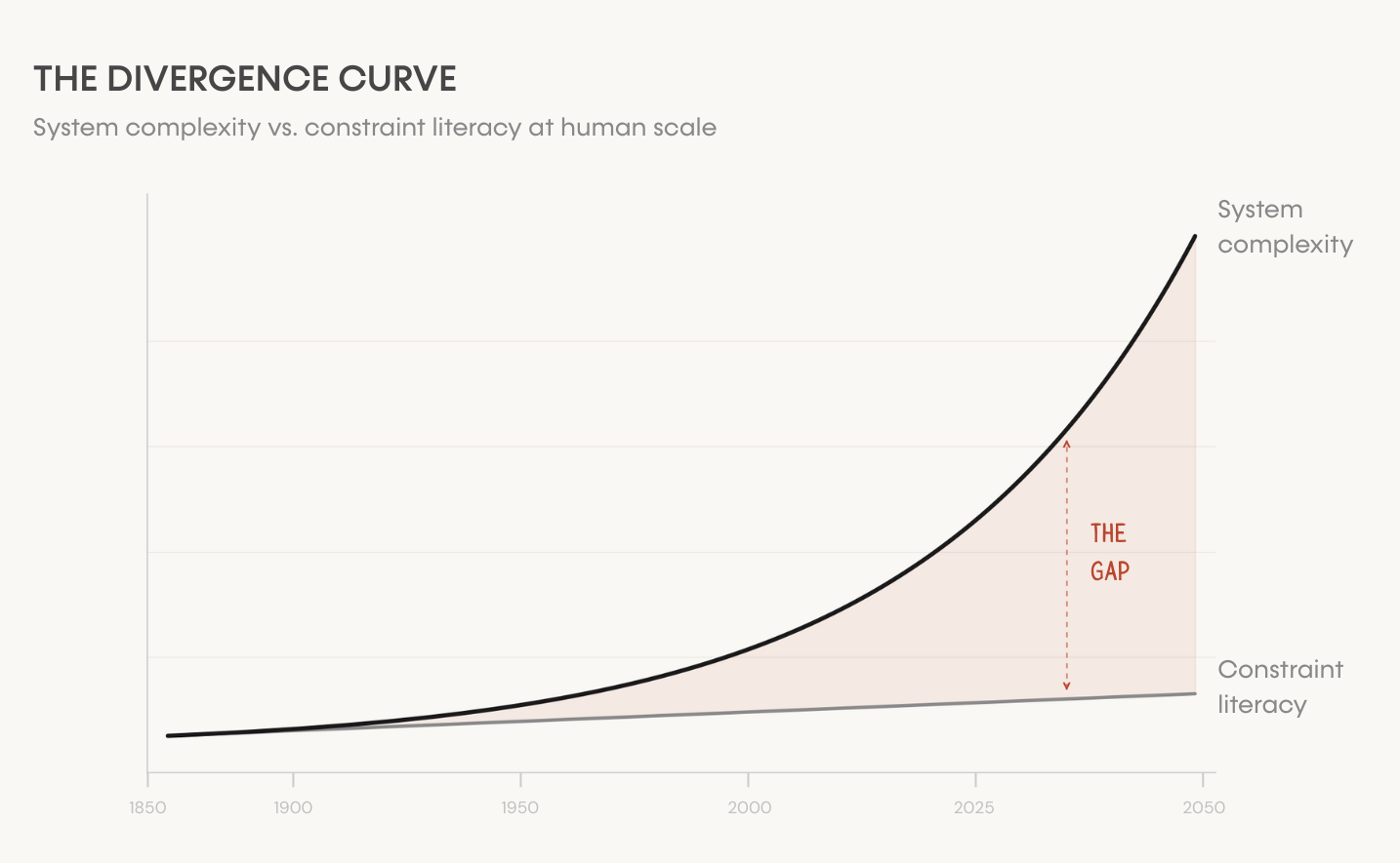 Human-scale systems such as organizations, markets, supply chains, and institutions get more interconnected every decade. Decisions propagate faster, cascades travel farther, and second-order effects are harder to see. As complexity climbs, constraint literacy stays flat.