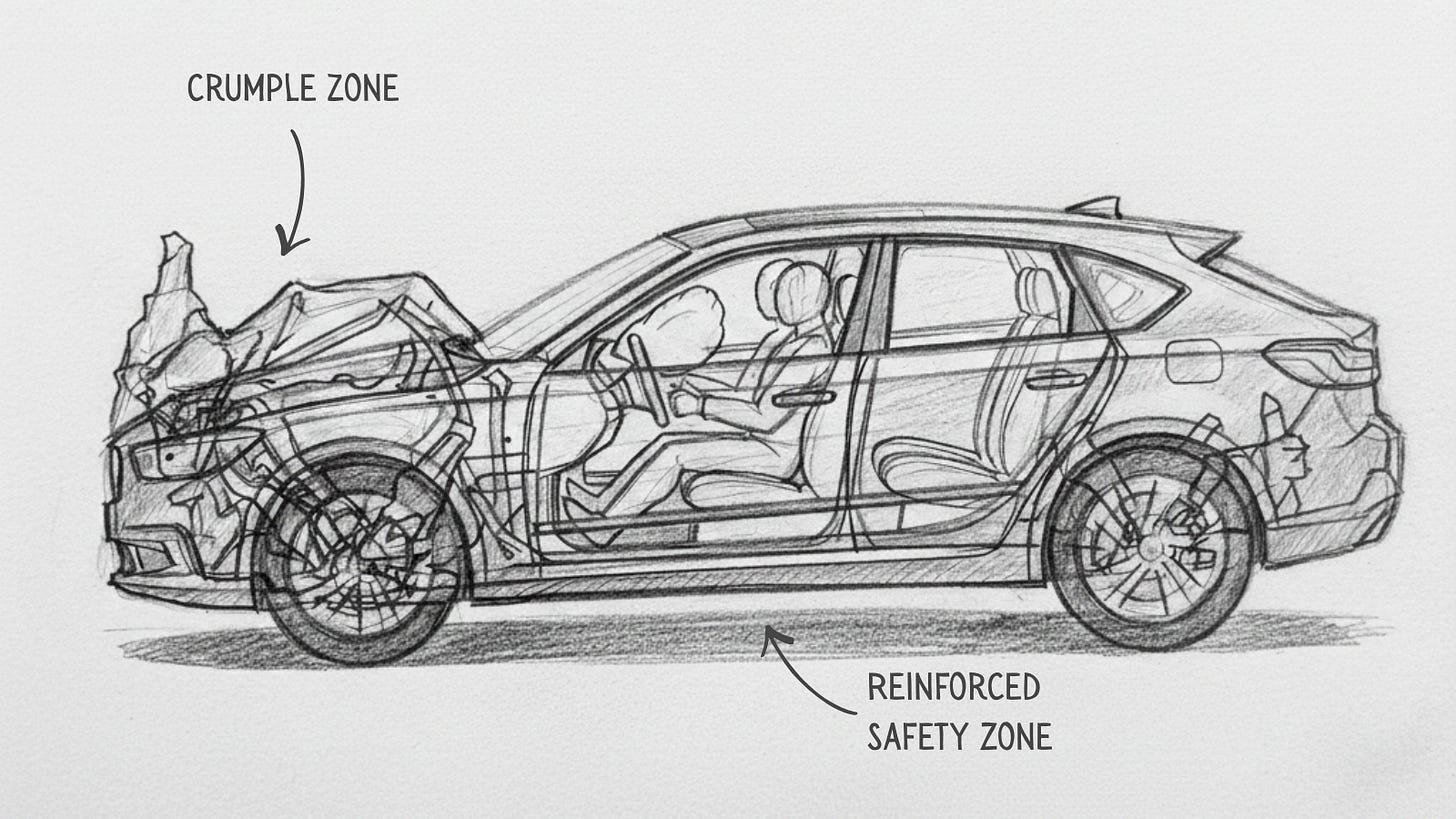 Your car is designed to crumple in a specific pattern during a crash—not randomly, but because engineers modeled how the metal should deform to soak up the impact so your body doesn’t have to.